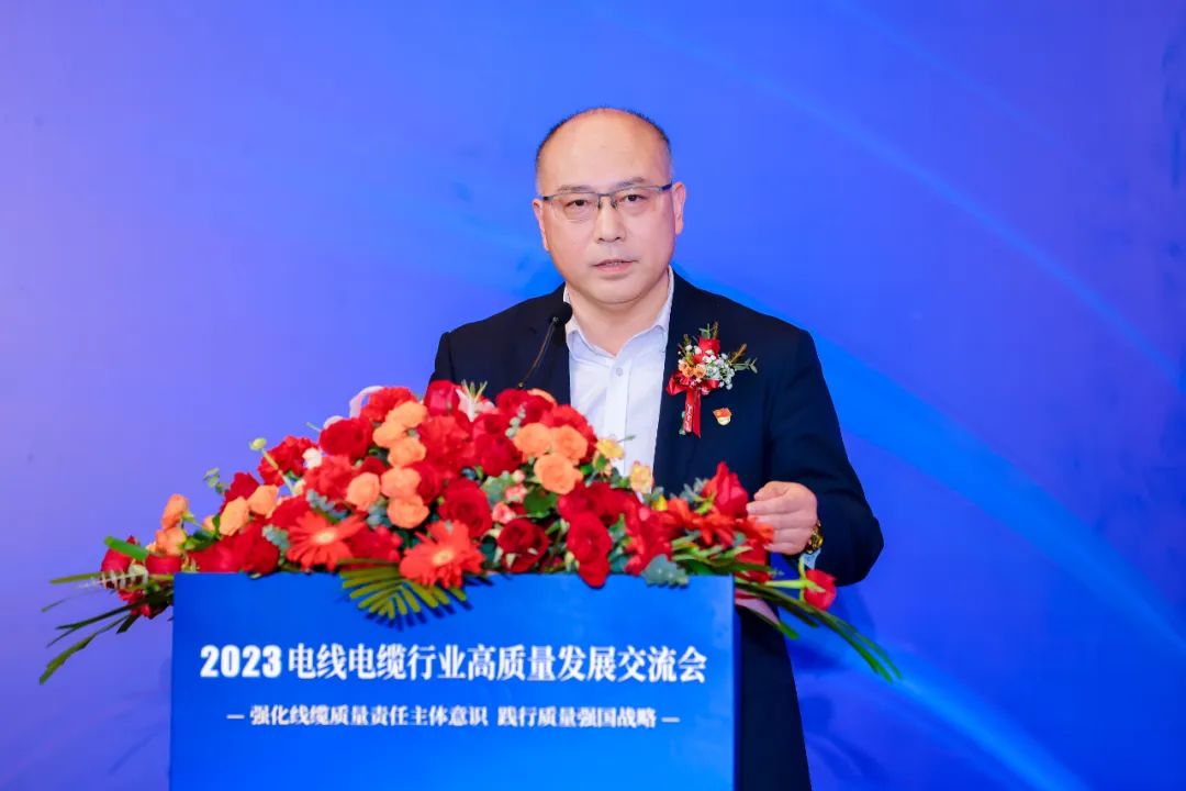 本次会议将线缆行业如何实现高质量发展摆上议题,邀请主管部门领导、行业权威专家、企业家共商线缆行业未来发展路径。汉缆股份董事长张立刚作为企业代表上台分享公司高质量发展的经验与心得,并发表《以更大格局、更强创新、更实步伐 提高制造业核心竞争力》的主题演讲。